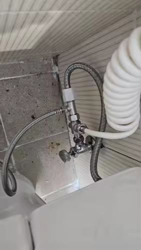 Nie. Instalacja zajmuje około 10–15 minut. W zestawie znajdują się elementy potrzebne do podłączenia. Nie potrzebujesz hydraulika ani specjalistycznych narzędzi.